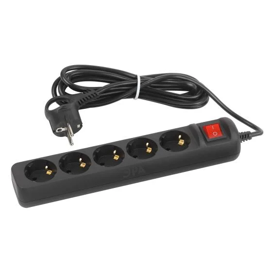 Удлинитель ЭРА UX-5es-1,5m-B с/з. с выкл. 5гн. 1,5м 3*0,75мм2 черн.