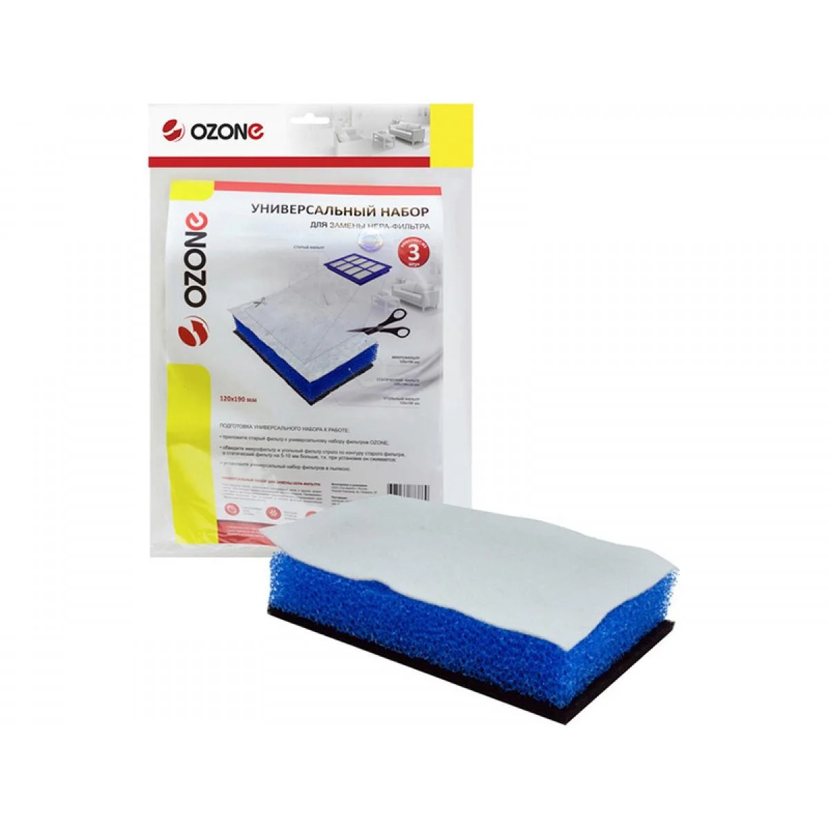 Набор универсальных для замены НЕРА-фильтра 120*190 мм. OZONE (H-09)