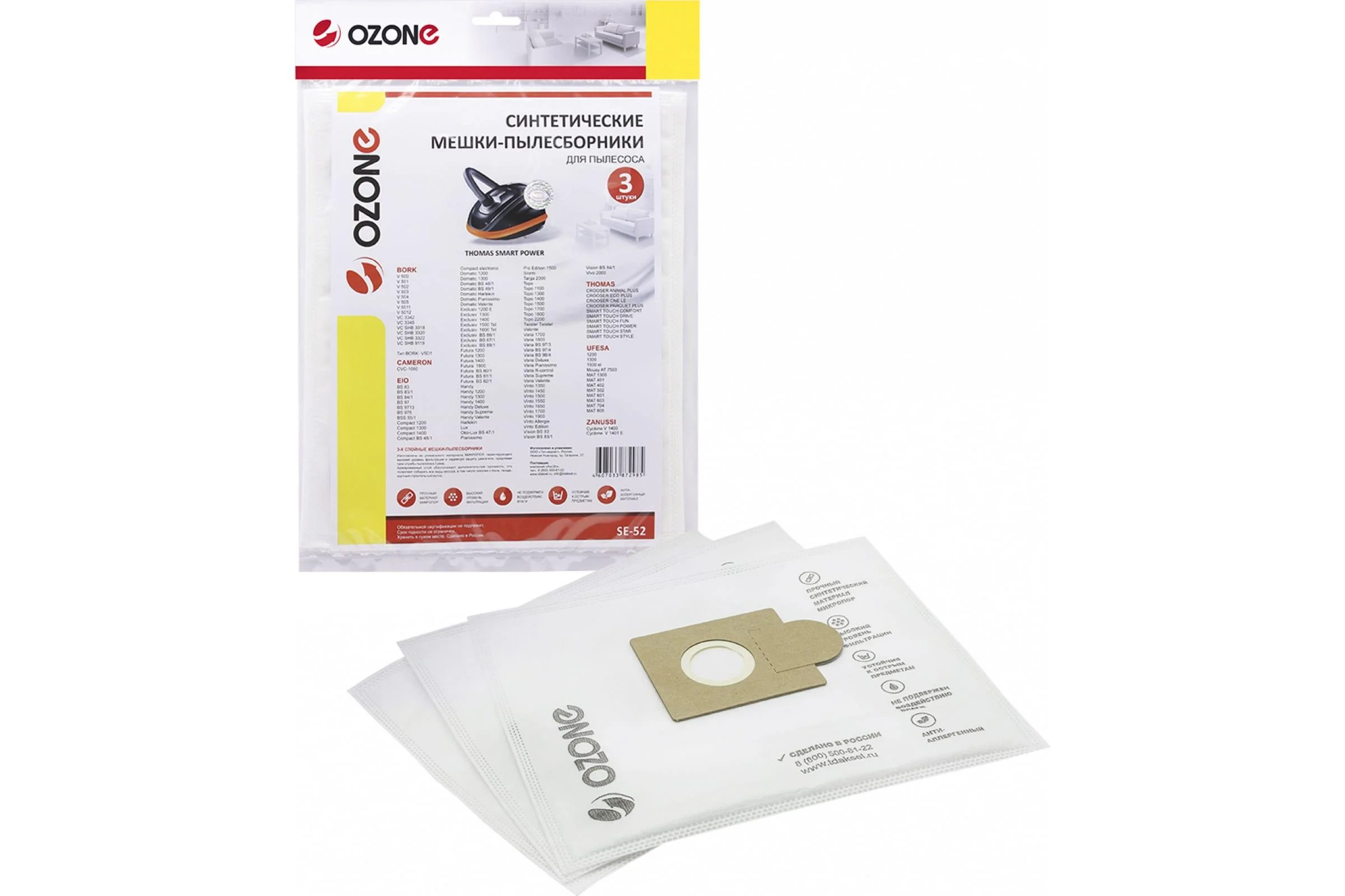 Одноразовые мешки-пылесборники OZONE SE-52 для пылесоса изготовлены из многослойного синтетического материала, который качественно изменит вашу уборку. Благодаря высокому уровню фильтрации пылесборники задерживают мельчайшие частицы пыли и мусора. Увеличенная прочность позволяет собирать любые виды мусора, в том числе осколки стекла, гвозди, обеспечивая защиту внутренних элементов пылесоса. Мешки отличаются устойчивостью к воздействию жидкости. Снижают нагрузку на двигатель пылесоса, сохраняя постоянно высокую мощность всасывания и позволяет продлить срок службы турбины пылесоса.