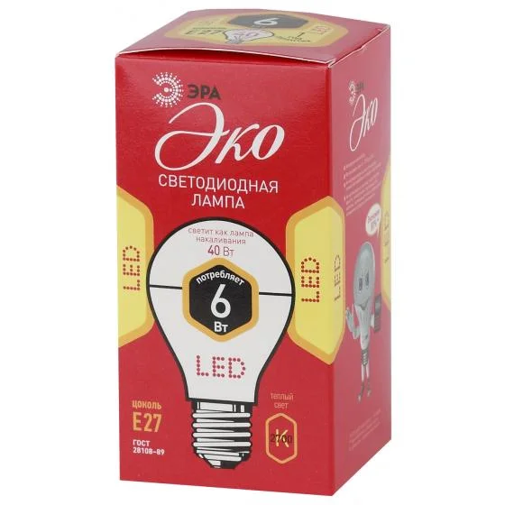 Лампа ЭРА LED A60-6w-827-E27 ECO. (6Вт.420лм.2700К) 1 год гарантии