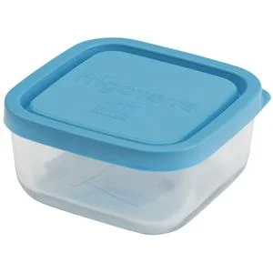 Стеклянный контейнер B335190 Bormioli Rocco Frigoverre квадратный 10*10 см, 340 мл, с синей крышкой Сделано в Италии